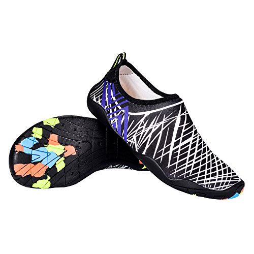 Low profile style with the printed pattern on external facing gives a simple look and easily matches your clothing. Breathable design to feel more comfortable and the healthy materials used to make you in good spirit to better enjoy your free time. Light weight and good craftsmanship make sure the high quality and convenient to your life especially when travelling outside with rare room taken up. Feel more Comfortable and soft when walking on the beach to feel the soft sands just like barefoot. What's more, a protective cover for your foot when swimming and avoid hurting. Save your strength when climbing and perfect for exercising such as running, yoga and even a good replacement for slippers at home.