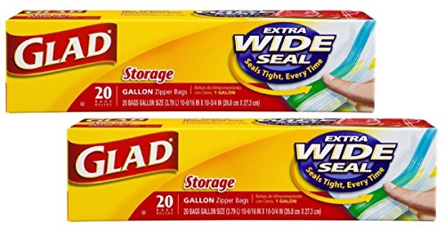 Glad Food Storage Bags w/Extra Wide Seal, Gallon Zipper Bags, 20 Per Pack, 2 Count (40 Bags Total)