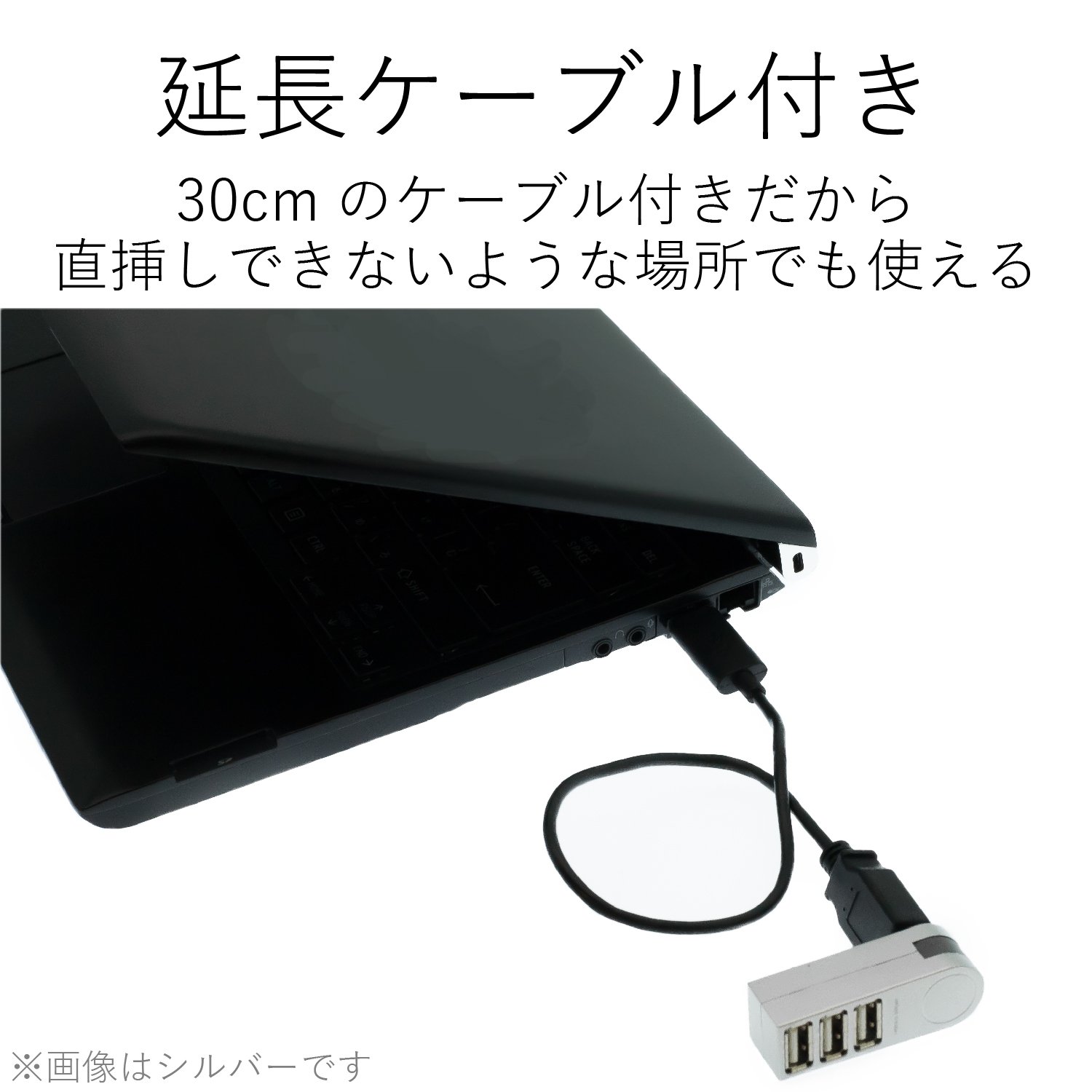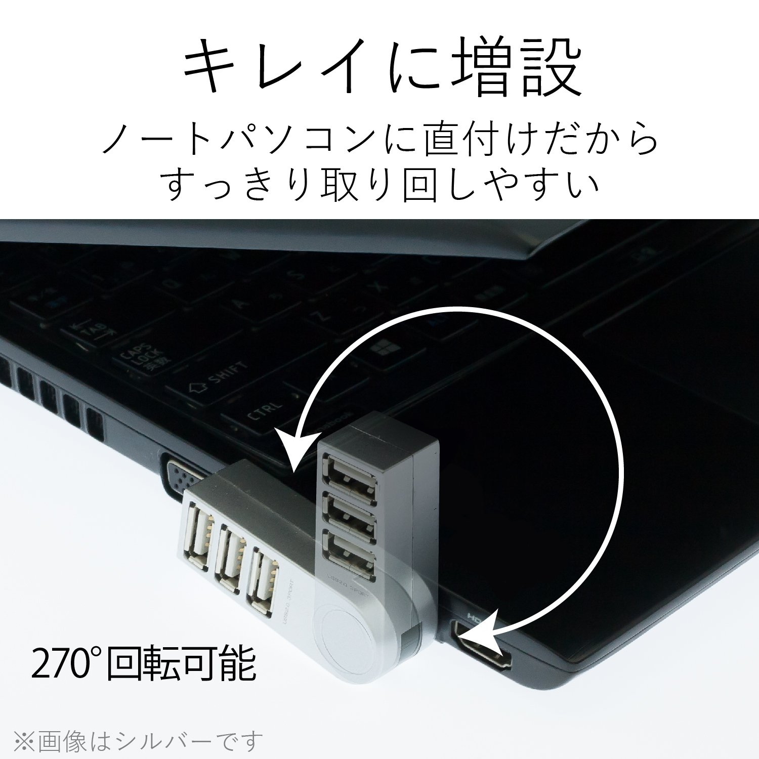 The body can rotate 270 degrees vertically with respect to the USB connector and it can be adjusted according to the orientation of various USB ports of the notebook computer.