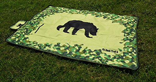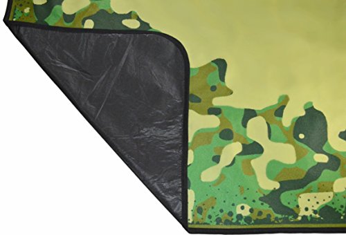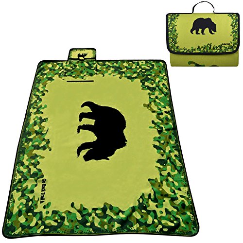 Large Folding Picnic Blanket - 60” x 78” - Water-Resistant Backing - Bear Fleece Blanket with Green Camo - Foldable & Lightweight - Great Mat for Outdoor Camping with Babies Kids Children Beach