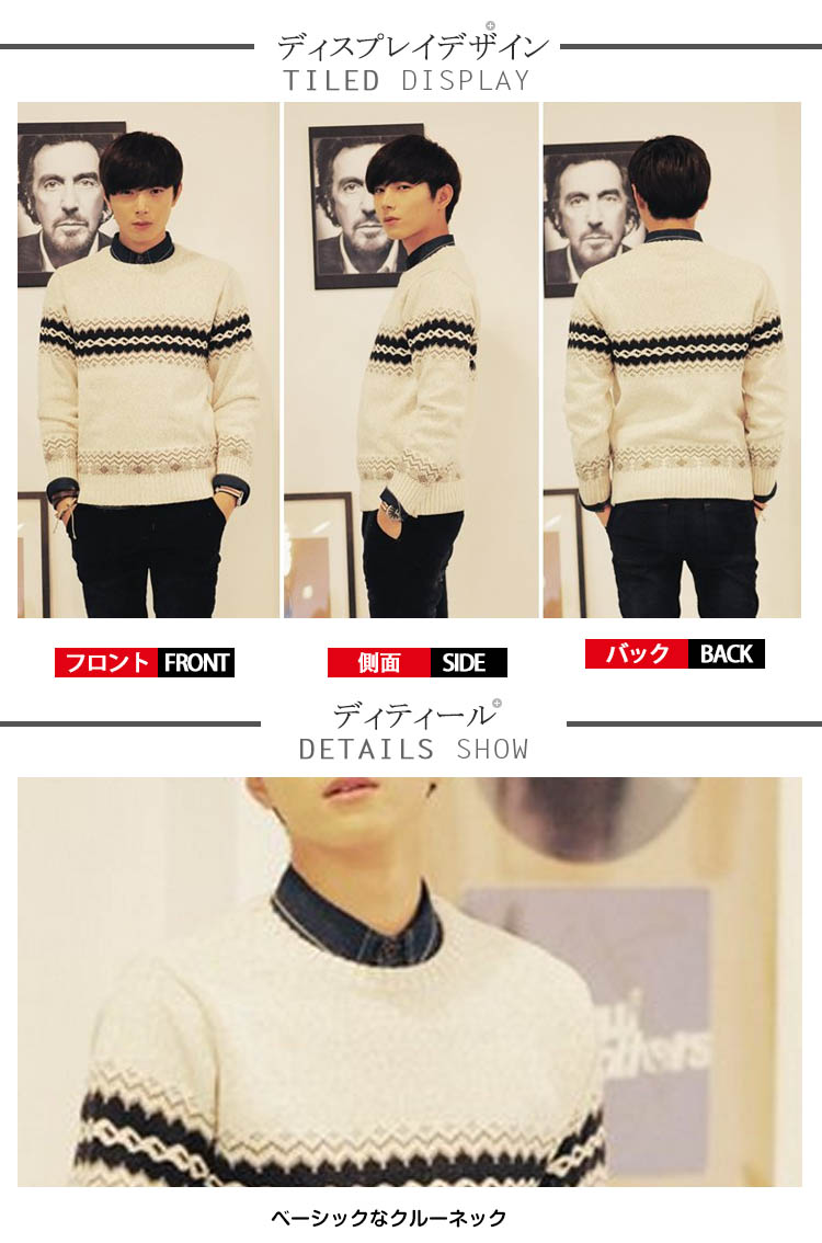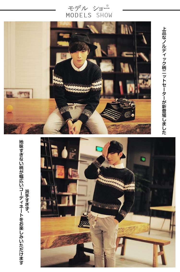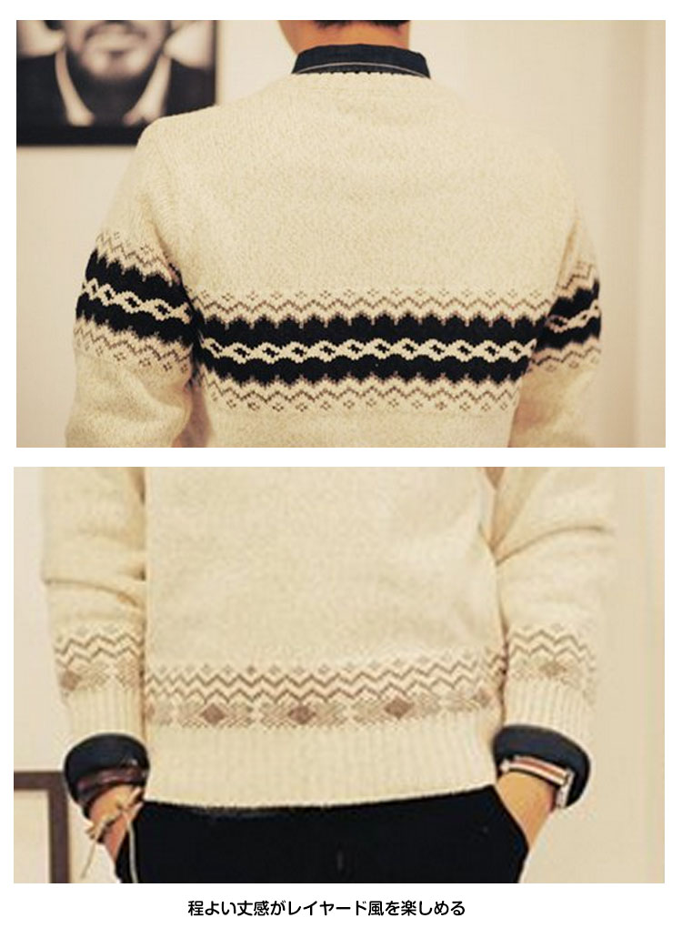 | 上品なノルディック柄ニットセーターが新登場しました派手すぎず、地味すぎない柄が幅広いコーディネートをお楽しみいただけますシャツの上に羽織るとカジュアルスタイル♪チェスターコートのインナーにすることとちょっとお出かけにも愛用されますタイトな作りで体にほどよくフィットして洗練されたシルエットを魅せます | |