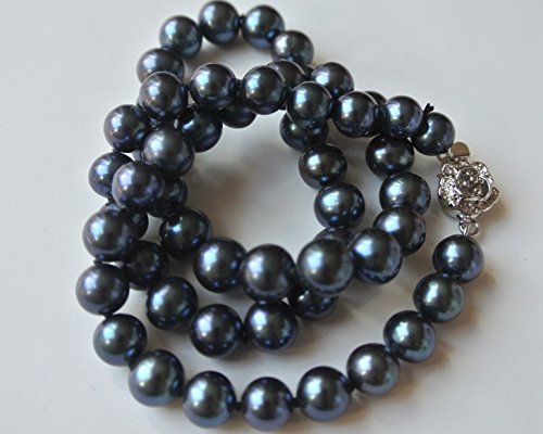 This gorgeous black necklace is strung together with 7-8mm black cultured freshwater pearls. Great luster, smooth surface, round to the eye. 16" choker style. Comes in a luxuary jewelry box.Feature