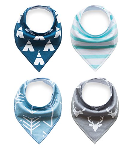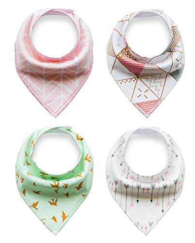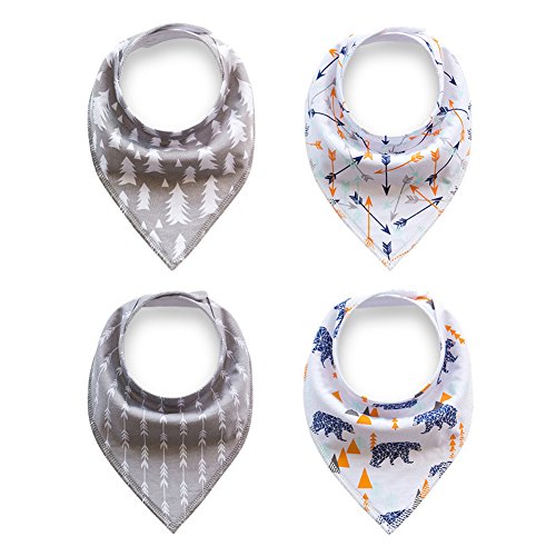 -. Feature : Front is 100% soft organic cotton and Back is polyester fleece for absorbency.Protect and keep your drooly or teething baby dry from all dribble. / Modern set of 4 trendy unisex bibs.Neutral patterns look great on both boys and girls.Ultra comfortable design with baby in mind.Your baby will be drooling in style! / 2 nickel-free snaps provide different sizing as baby grows.Recommended ages: 0 to 24 months.Bibs stay in place and your baby won't be able to pull them off! / Best gift for new moms.These bibs are amazing.They are stylish,comfortable and so soft.Moms love these modern,fun,and practical bibs. / We truly care about every single one of our customers.Not only are our bibs made with love,but we go above and beyond with our customer care!