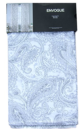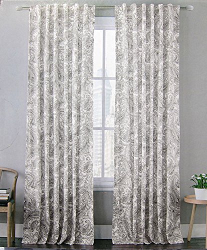 Envogue Noreen Paisley Medallion Pair of Curtains in Grey White Gray Colors 50-by-96-inch 100% Cotton Set of 2 Window Panels Drapes Hidden Tabs Panels