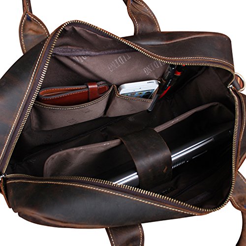 - Title : S-ZONE Crazy Horse Genuine Leather Briefcase Bag for 17" Laptop