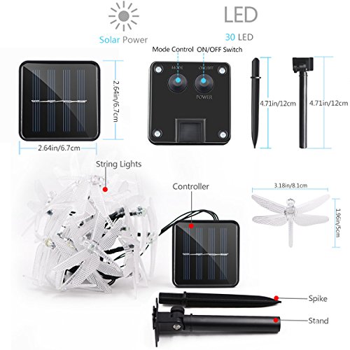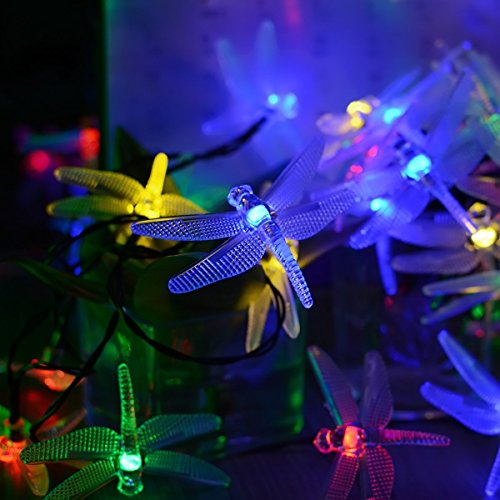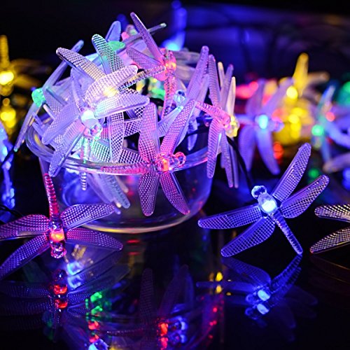 Vmanoo Christmas Solar Lights 15.5ft 20 LED 8 Modes Multi Color Dragonfly Fairy String Light for Home Garden Outdoor Party Patio Landscape Decoration Valentines Gift