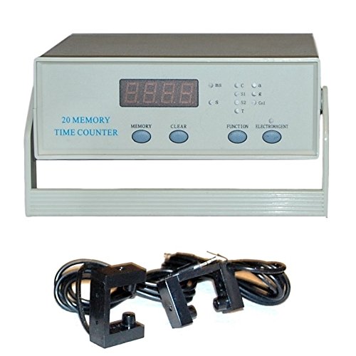 Studio : Sci-Supply Publisher : Sci-Supply Product Description The model SS20120 20-Memory Time Counter is a general-purpose laboratory timer-counter. In conjunction with the included photogate sensors, it performs a variety of pre-programmed counting and event timing functions to facilitate calculation of such physical quantities as position, velocity, and acceleration. The unit features a 20-event memory so that data collected during an experiment may be reviewed and recorded. It is primarily intended for use in classroom demonstrations of such phenomena as uniform motion, accelerated motion, conservation/exchange of momentum, harmonic motion, and free-fall. This solid-state digital timer is perfect for our air track and free fall apparatus. When used in conjunction with the free fall apparatus, it has an on board electromagnet controller (6V output) to attach and release the steel ball. Can also be used in conjunction with the Hall's Cart and Inclined plane to calculate cart velocity. Two photogates are included, each with its own shielded connecting cord. The timer has functions for timing mechanical periods of oscillation, acceleration, collision velocities, counting, gravity acceleration and more. Input Power: 120VAC 60Hz Duty Cycle: Continuous Timing Range: >0.2 millisecond to 999.9 seconds Timing Resolution: to 0.01 milliseconds Counting Range: 0~9999 Memory capacity: 20 events Integrated control for electromagnetic ball release Dimensions (lxwxh) 8" x 3" x 3" / 212mm x 78mm x 78mm 0