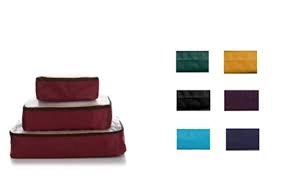 Product Description Whether you're off to the Bahamas or just a weekend getaway, this handy cube set allows you to pack smart. Samantha, America's travel guru, thinks of everything. THE BASICS Content: Made of 75% nylon, 25% frosted PVC Lining: 210D printed polyester lining Hardware: Goldtone FEATURES Packing Cubes Large measures approx. 17"L x 12"W x 4"H with 4 lb. max weight capacity Medium measures approx. 13"L x 9"W x 3-3/4"H with 3 lb. max weight capacity Small measures approx. 9"L x 7"W x 3-1/2"H with 2 lb. weight capacity Piece Notes Flat carry strap (large and medium cubes) Clear PVC top for visibility Self-repairing zippers 0