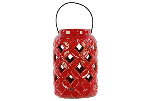 -. Title : Urban Trends 13612-UT Ceramic Lantern with Metal Handle Gloss, Red