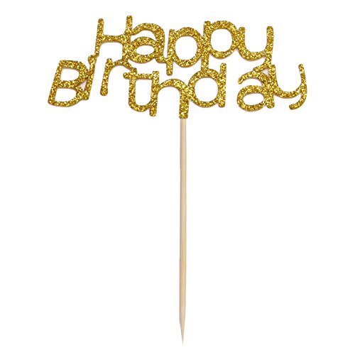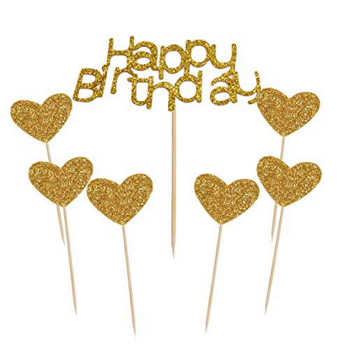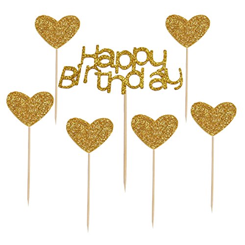 HUELE 21 pcs Happy Birthday Cake Toppers Glod glitter and love star for Party decor Decorations