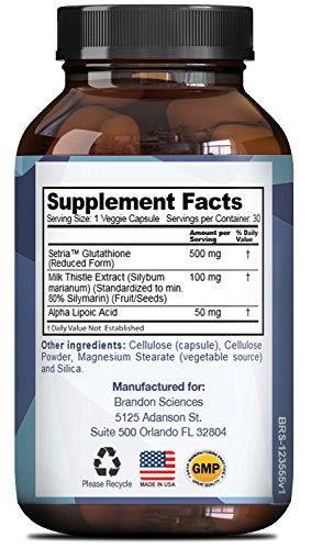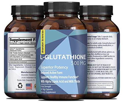 -. Binding : Health and Beauty -. Brand : Brandon Sciences -. EAN : 0806810458600 -. Feature : LIGHTEN + WHITEN - Our all natural food grade capsules work similarly to acyl glutathione products but are faster and easier as a daily oral dosage - GSH binds to melanin to clear + brighten skin / POPULAR DETOXIFIER - Many ways to take Glutathione - pills + tablets easiest + simplest - better than soap serum spray injection powder cream injectable patch + lotion - MD DR + Expert recommended / RAISE ANTIOXIDANT ACTIVITY - An organic way to cleanse body + improve cellular function - one of most important naturally occurring molecules for organ function - liver health + vibrant skin / OTHER REVIEWS + USES - Improves T cell function - support cellular energy ATP production - youthfulness + strength - these essential amino acids + peptide chains called mother of all antioxidants / WAY TO BOOST GLUTATHIONE - Foods that increase Glutathione production are high in protein - combine with vitamin C supplementation for ways to boost glutathione - age + diet affect Glutathione system -. IsAdultProduct : 0 -. Label : Brandon Sciences -. Manufacturer : Brandon Sciences -. MPN : LE -. PackageQuantity : 1 -. PartNumber : LE -. ProductGroup : Health and Beauty -. ProductTypeName : HEALTH_PERSONAL_CARE -. Publisher : Brandon Sciences -. Studio : Brandon Sciences -. Title : Pure Liposomal Glutathione Supplement - 500mg Skin Whitening Pills - Best Natural Antioxidant Benefits - Reduced L Glutathione Men + Women - Cognitive + Immune Support - Liver Detox - Brandon Sciences -. UPC : 806810458600