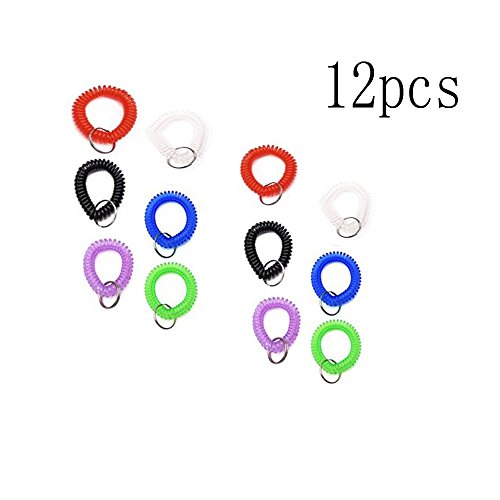 Elife Pack of 12 Assorted Color Stretchable Plastic Bracelet Wrist Coil Wrist Band Key Ring Chain Holder Tag (12PCS-6 Mixed Color)