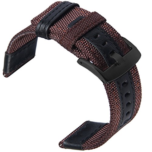 -. Title : OTOPO 22mm 24mm Premium Nylon Woven with Leather Replacement Wrist Band Bracelet Strap