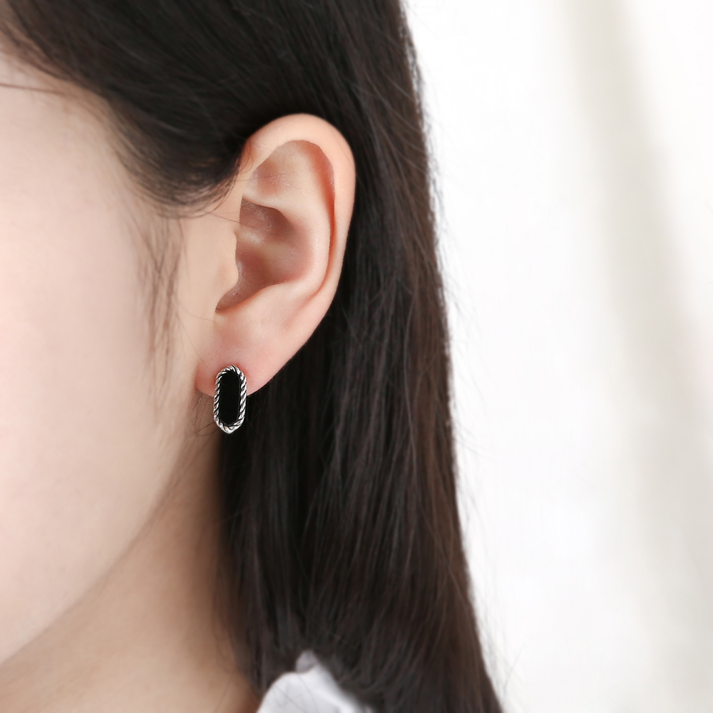 롱 라운드 오닉스 귀걸이