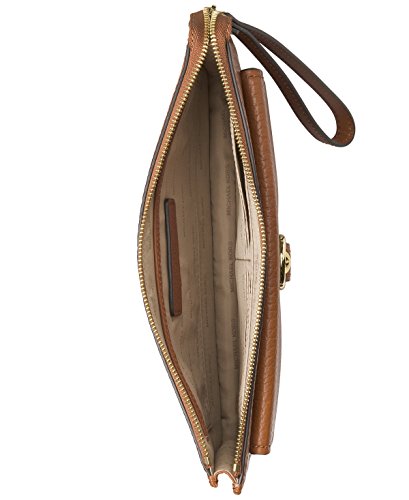 -. Feature : 9"W x 6-1/2"H x 1/4"D. / Interior features 1 slip pocket and multiple card slots. / 7"L wrist strap. Zip closure. / Exterior features gold-tone hardware and 1 front snap pocket. / Leather; lining: polyester.
