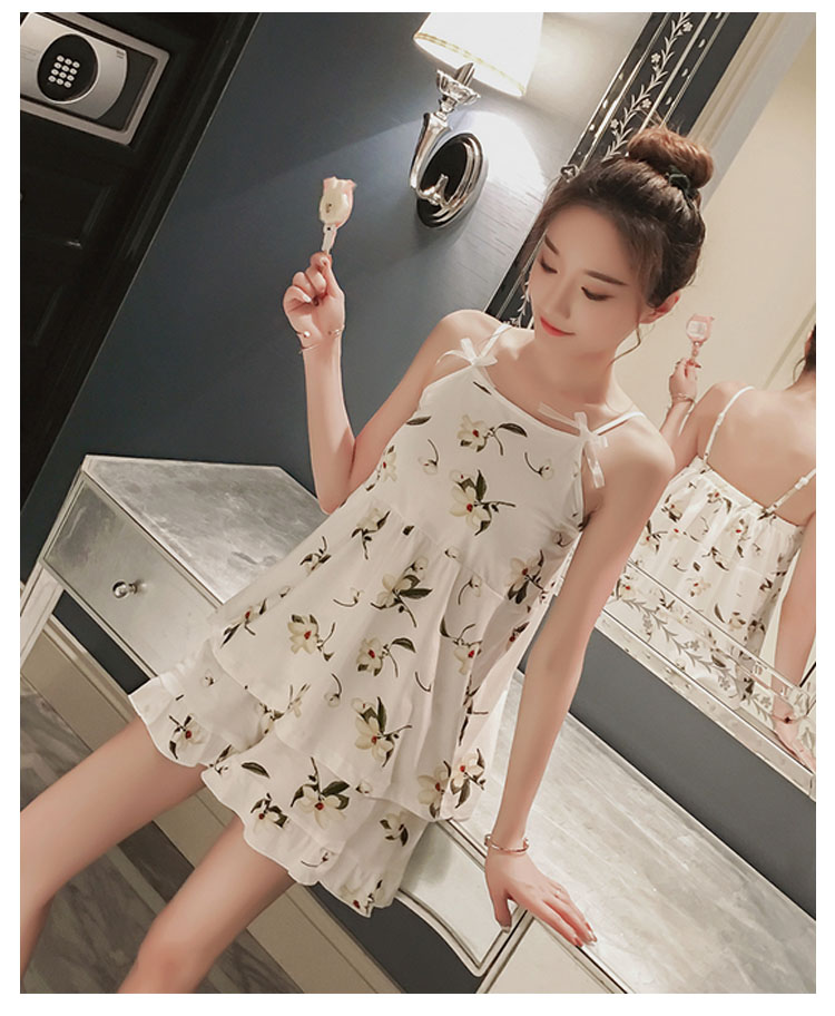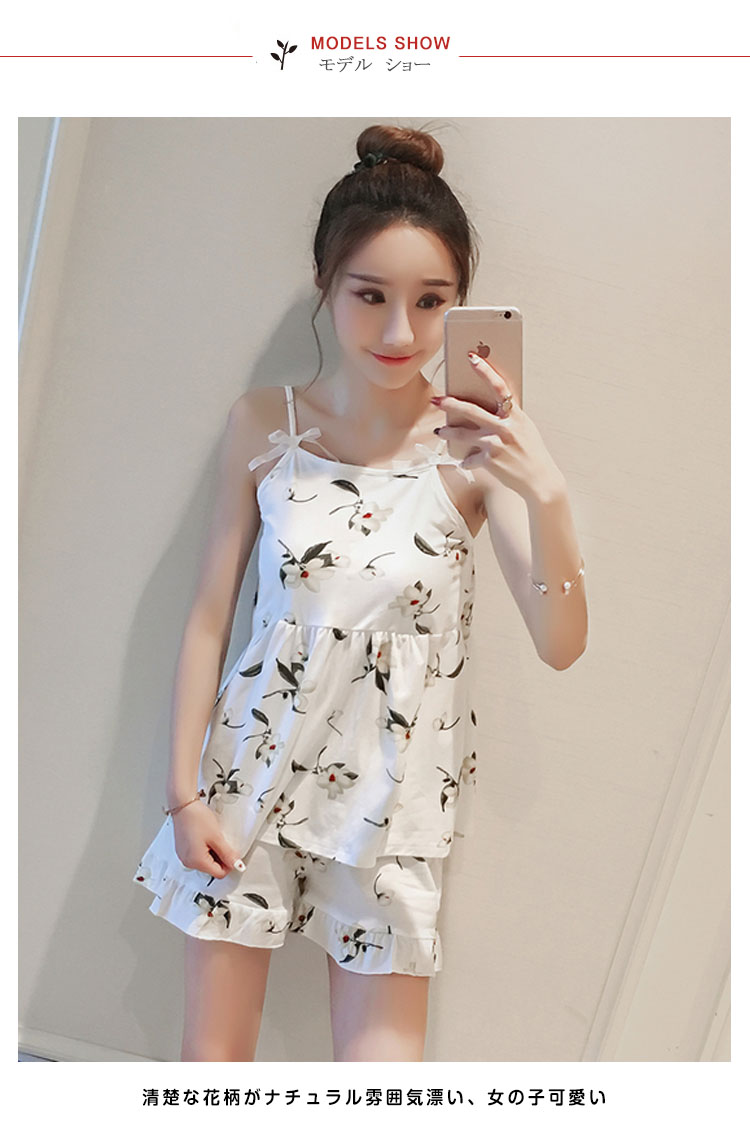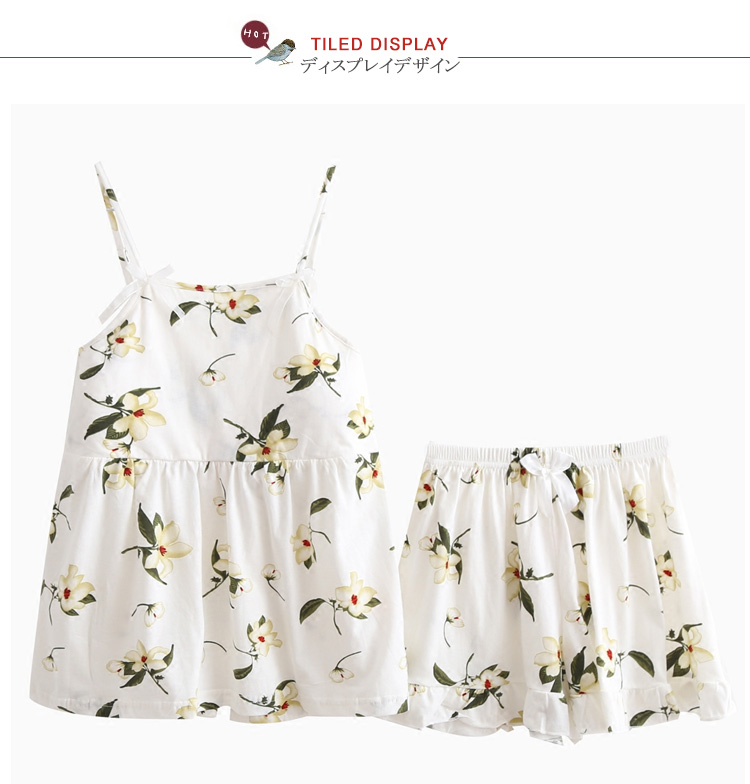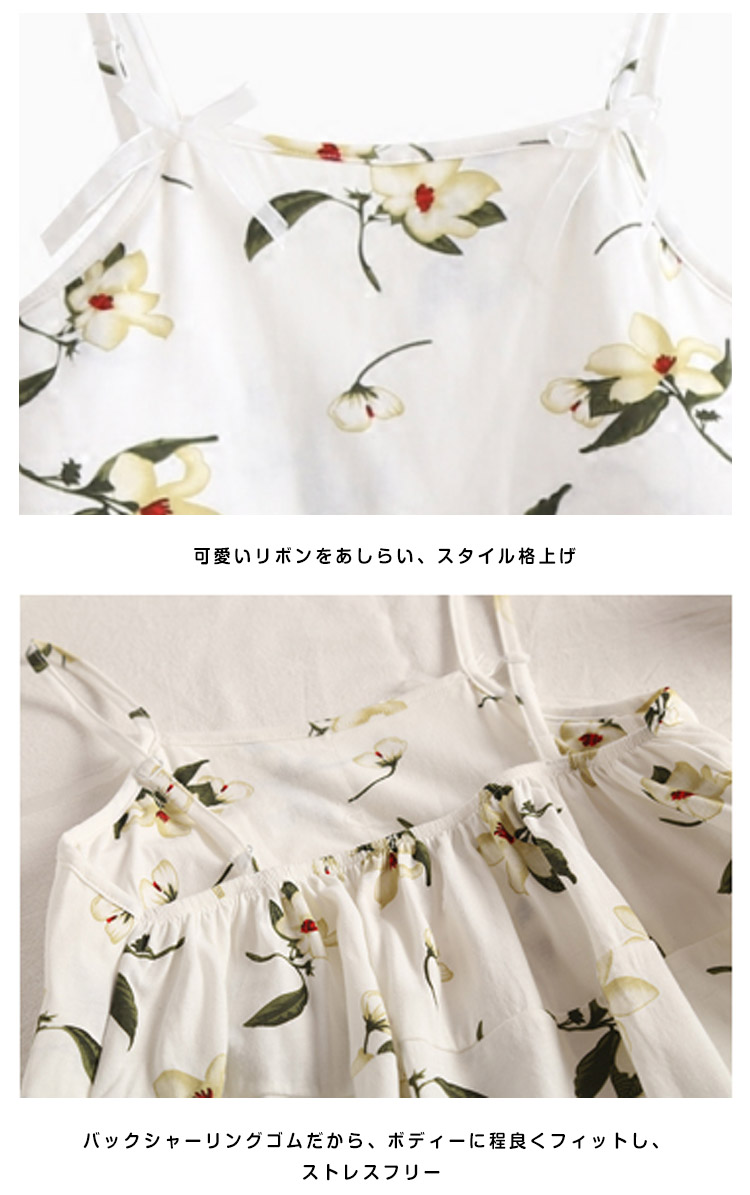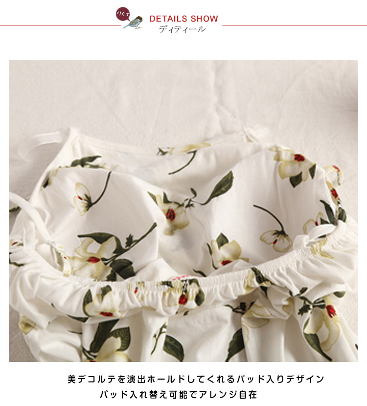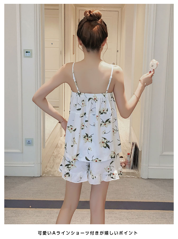 | 美胸をキープ!パッド入りキャミソールパジャマ!清楚な花柄がナチュラル雰囲気漂い、女の子可愛い肩紐はアジャスター付きで長さ調節可能、ご自分のサイズにフィットして着用いただけます。可愛いAラインショーツ付きが嬉しいポイントシンプルだけど、魅力的!風通しの良い素材でじめじめの蒸し暑い夏も快眠を◎ | |
