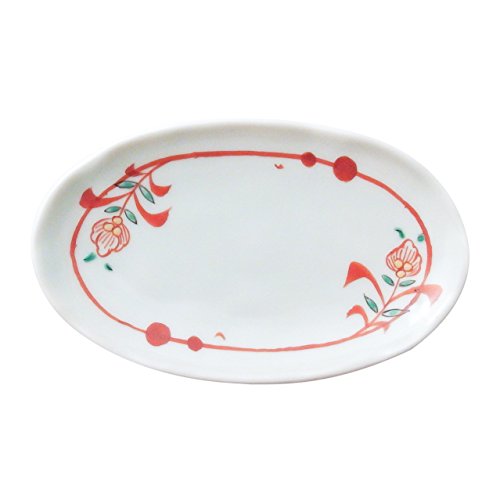 원본상품명: 有田? 赤?花?4.5寸小判皿 13.5cm ?平窯 dep1512