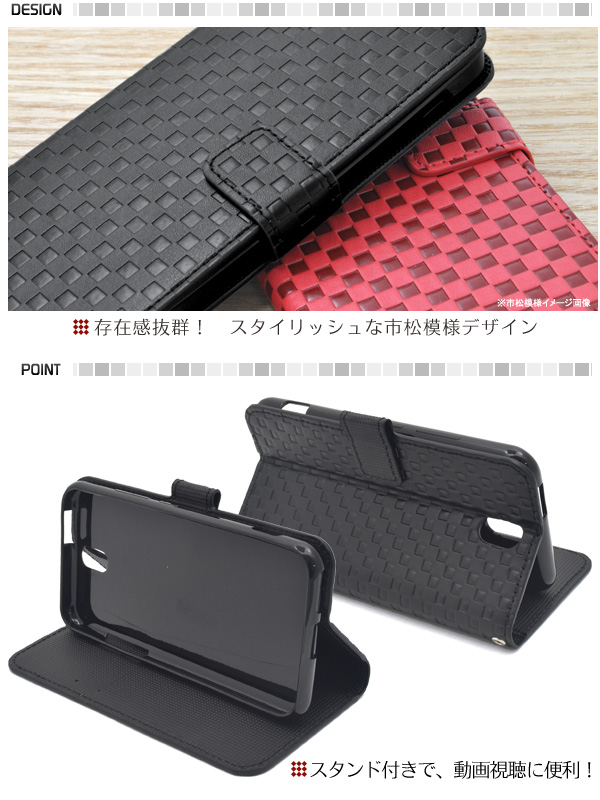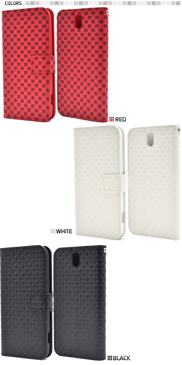 市松模様レザーデザインのAndroid One S1用スタンドケースポーチ。
