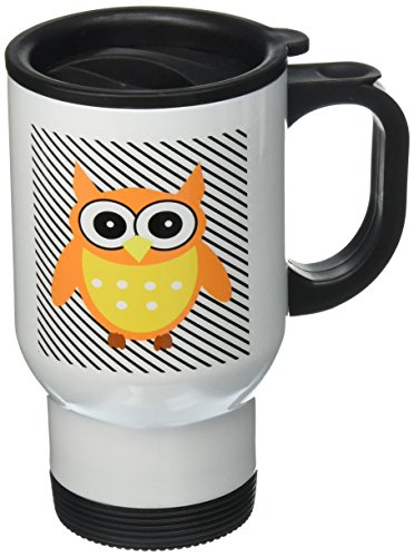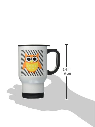 3dRose Cute Orange Owl on Black N' White Stripes Travel Mug, 14-Ounce, Stainless Steel