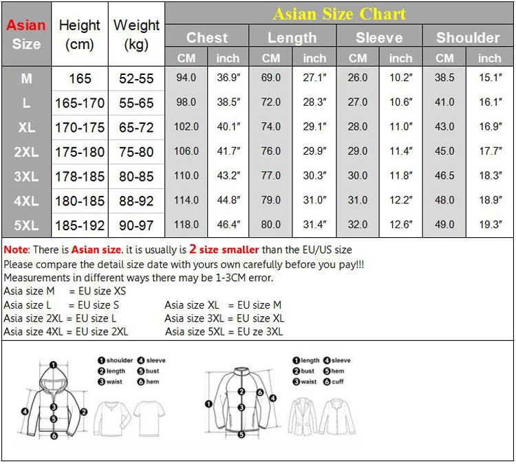 Asian size:M,L,XL,XXL,XXXL,XXXXL,XXXXXL