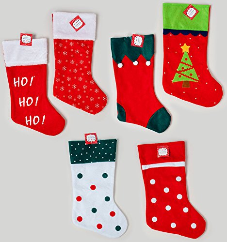 18" Felt Christmas Stockings w/ Novelty Designs & Hanging Tag (Set of 6)
