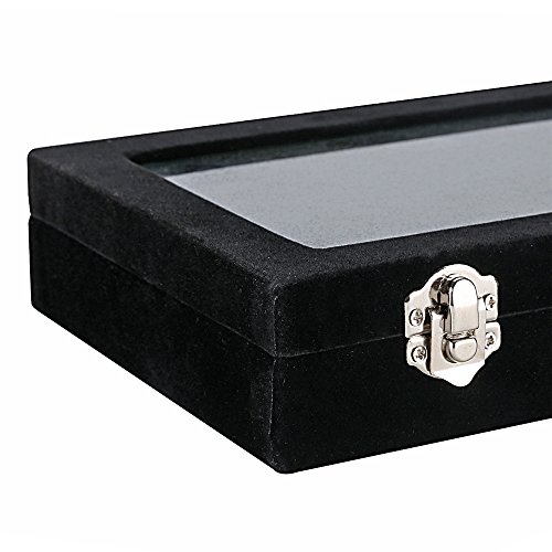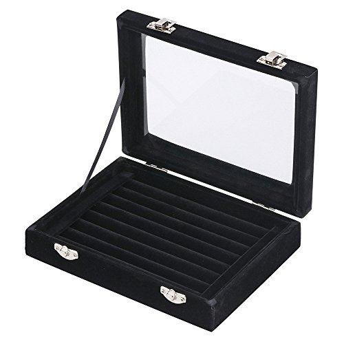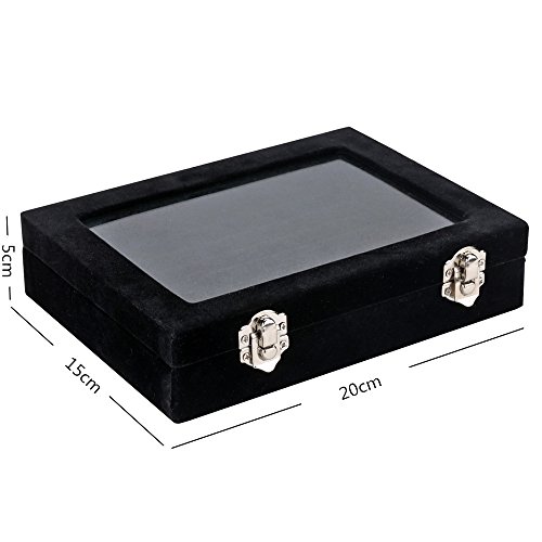LANTWOO Velvet Glass Jewelry Display Storage Box Ring Earrings Jewelry Box Ring Holder Case, 2 clasps