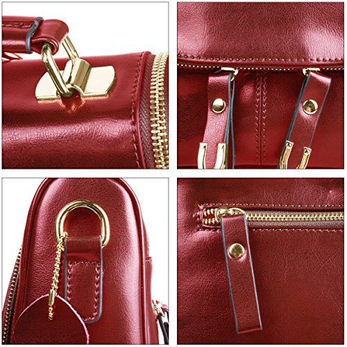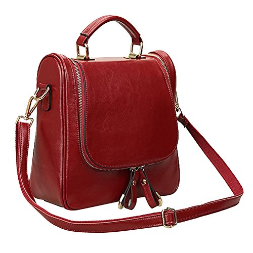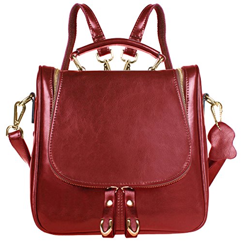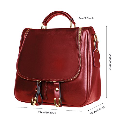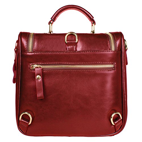 This fashion satchel is made of high quality oil wax split cow leather. It is perfect for ladies to use wherever they roam. The leather backpack features an interior with silky smooth lining, 2 small pouches for your cell phone or pens, 2 zipper pocket for cards, keys or small valuables secure. The leather bag comes with 2 removable shoulder straps, then you could use the bag as crossbody bag, small backpack. Cow split leather comes from a cow skin, genuine leather, and is harmless to human body and way too much durable than vinyl, while vinyl is all made of chemical material and irritating to human. Cow Split leather is often coated to be various colors and pattern. It is moderate genuine leather, soft and anti-scratch. To create a vintage and noble look, the leather is often polished and oiled, which makes the surface shinier and sleeker. The more you use, the more retrospective it will be. It may have natural odor at first, but the smell will fade away after a couple days' airing out. Approx Dimensions(L*H*W): 26*24*10cm/9.4*10.2*3.9inch, Height of handle: 7cm/2.8inch Color options: black, blue, burgundy, earthy yellow, Green Structure: 1 main pocket, 1 back zipper pockets, 2 inner zipper pockets, 2 small inner pouches Package include: 1 x S ZONE Ladies Small Leather Cross Body Handbag Backpack 2 x Removable shoulder straps 0