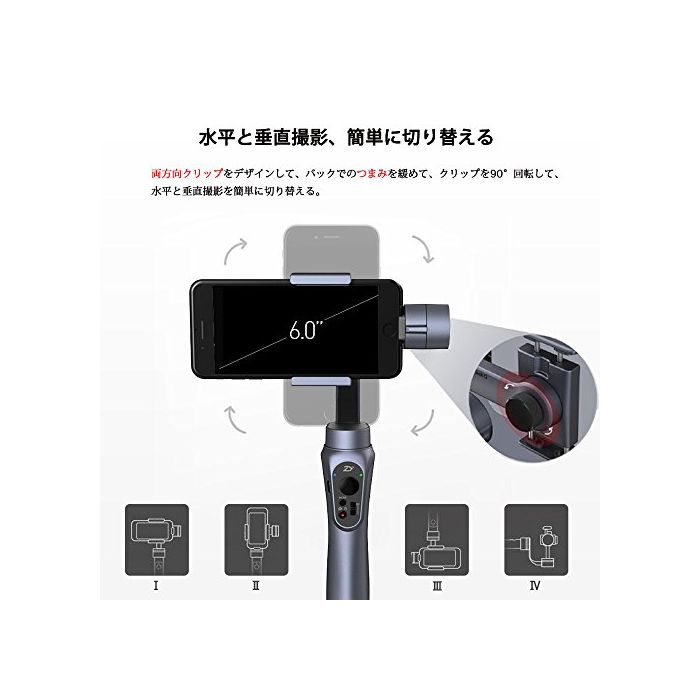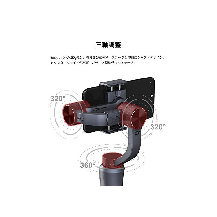 원본상품명: Zhiyun Smooth-Q スマトフォン用3軸 ハンドヘルド ジンバル スタビライザ 垂直&水平撮影 ワイヤレス制御 最大 6インチのフォンサイズ 8時 間ランタイム //ズム用ボ