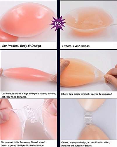 Features: The strapless and backless bra is to be adhered directly to the skin without binding straps on the back or shoulders. The bra feels natural and is suitable for evening, backless dresses, backless halter blouses, club/party dresses or most low cut tops.