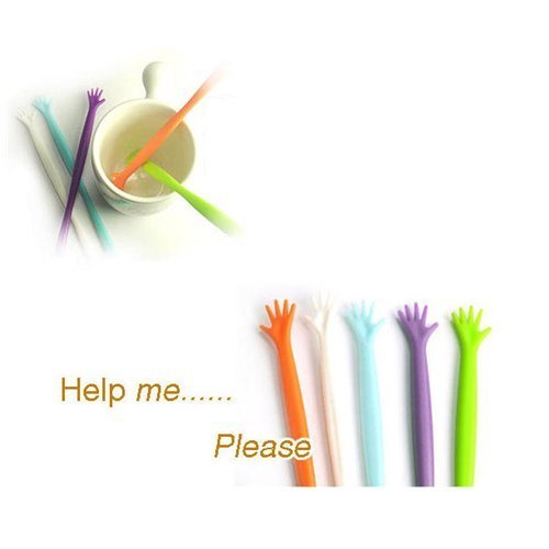 AUCH 5Pcs Reusable Colorful "Help Me" ABS Long Handle Coffee Stirring Rods/Muddler/Honey Stirrers/Juices Agitator Arm/Mixing Arm--Cute Gift Item, Random Color