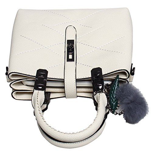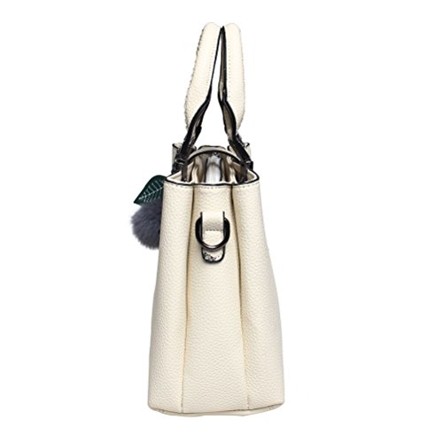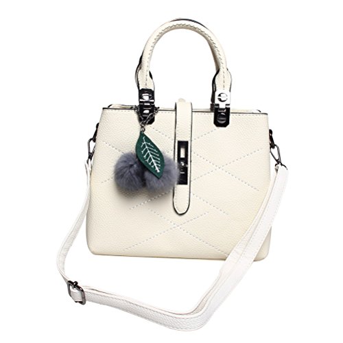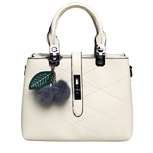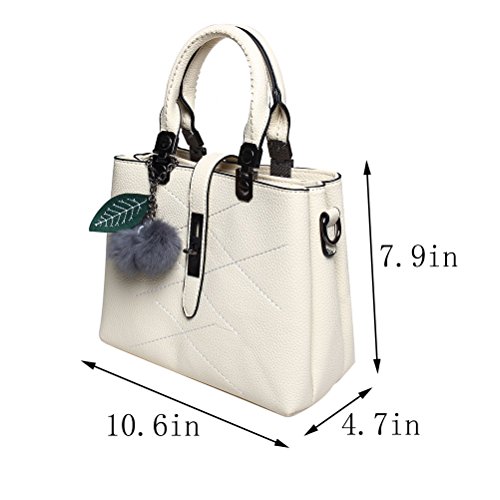Material: Top quality PU leather. This handbag will be perfect for all those fashion ladies. Capacity: This tote bag is approximately 10.6*4.7*7.9 inches, it big enough to hold wallet, tissue, make-up and all the belongings you need to go out. Features: Decorative gold-tone Hardware and cute hairball Detachable shoulder strap Top-zipper closure Occasions: Work and travel A perfect top-handle bag when dating Go out with friendsFeature