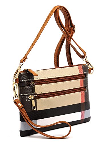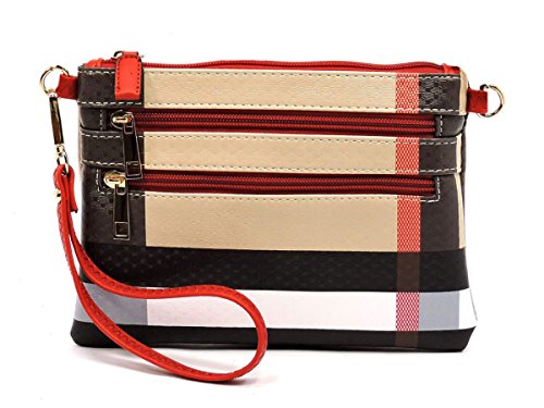 (Elphis)/Accessories/Handbags/DIRECT FROM USA/Elphis Tartan Plaid Check Multi Zipper Lightweight Crossbody Bag Wristlet Clutch