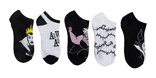 -. Feature : Disney Villains 5 pk Ladies and Juniors No Show Socks / Fits Ladies and Juniors sock size 9-11 / Fits Ladies and Juniors shoe size 4-10 / Ages 9 - Adult / Machine Washable