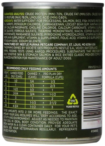 - Title : Purina Pro Plan Wet Dog Food, Focus, Adult Sensitive Skin & Stomach Salmon & Rice Entrée, 13-Ounce Can, Pack of 12