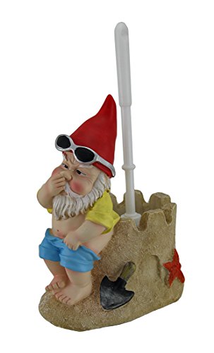 Beach Gnome On Sandcastle Throne Toilet Brush and Holder Set