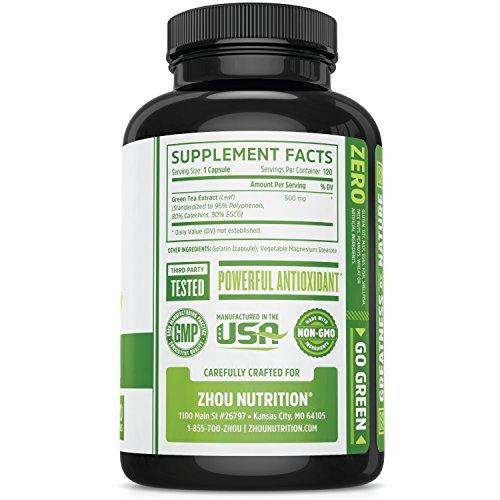 SUPER ANTIOXIDANT & FREE RADICAL SCAVENGER - Support your immune system! Zhou Nutrition’s Green Tea Extract contains polyphenol catechins and Epigallocatechin gallate (EGCG) to fight cell damage, aid the growth of healthy cells in your body, and promote fat oxidation.