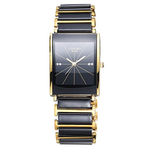 -. Title : LONGBO Luxury Men Gold Black Ceramic Bracelet Watches Casual Couple Dress Gentlemen Watch Rinestone Waterproof Square Business Wristwatch