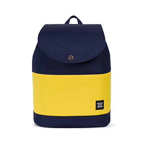The design driven Reid backpack is equipped with a traditional drawcord cinch closure hidden beneath a rounded top flap.