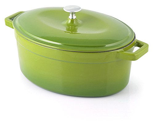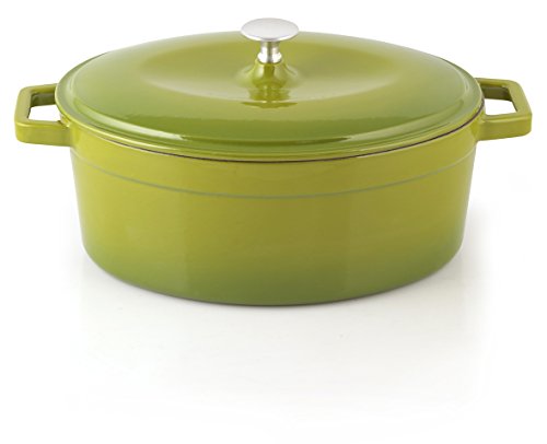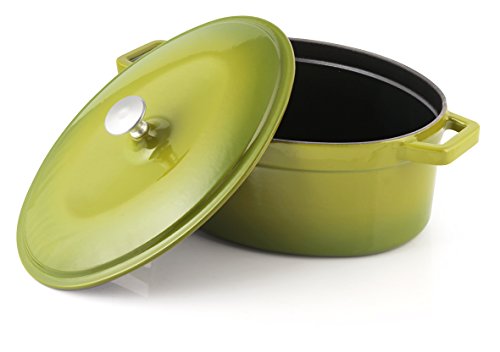 Durable enameled cast-iron is one of the preferred materials for kitchen cookware. Contains no toxic anti-stick substances, is resistant to high heat (oven safe), conducts and distributes heat evenly