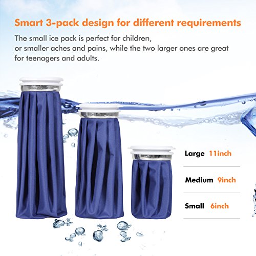 Smart 3-pack Desigh for different requirements. [Large (11"), Medium (9"), Small (6")] - The small ice pack is perfect for children, or smaller aches and pains, while the two larger ones are great for teenagers and adults.