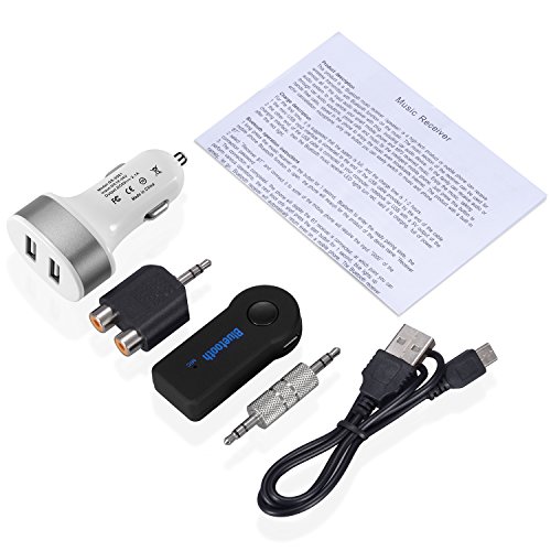 - 5. PACKAGE INCLUDES: Bluetooth 4.1 Receiver / Micro USB Cable / 3.5mm Plug /User's Manual, CAR CHARGER / 2 RCA ADAPTER; If you have any questions or suggestions, please contact us; We will solve your problem promptly, until you are satisfied!