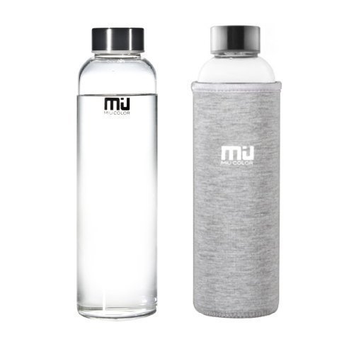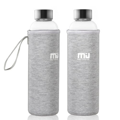 MIU COLOR® Unique and Stylish High-quality Environmental Borosilicate Glass Water Bottle with Colorful Nylon Sleeve, 18.5 Ounces without Tea Strainer,White Grey Nylon Sleeve, 2 Cleaning Brushes Included
