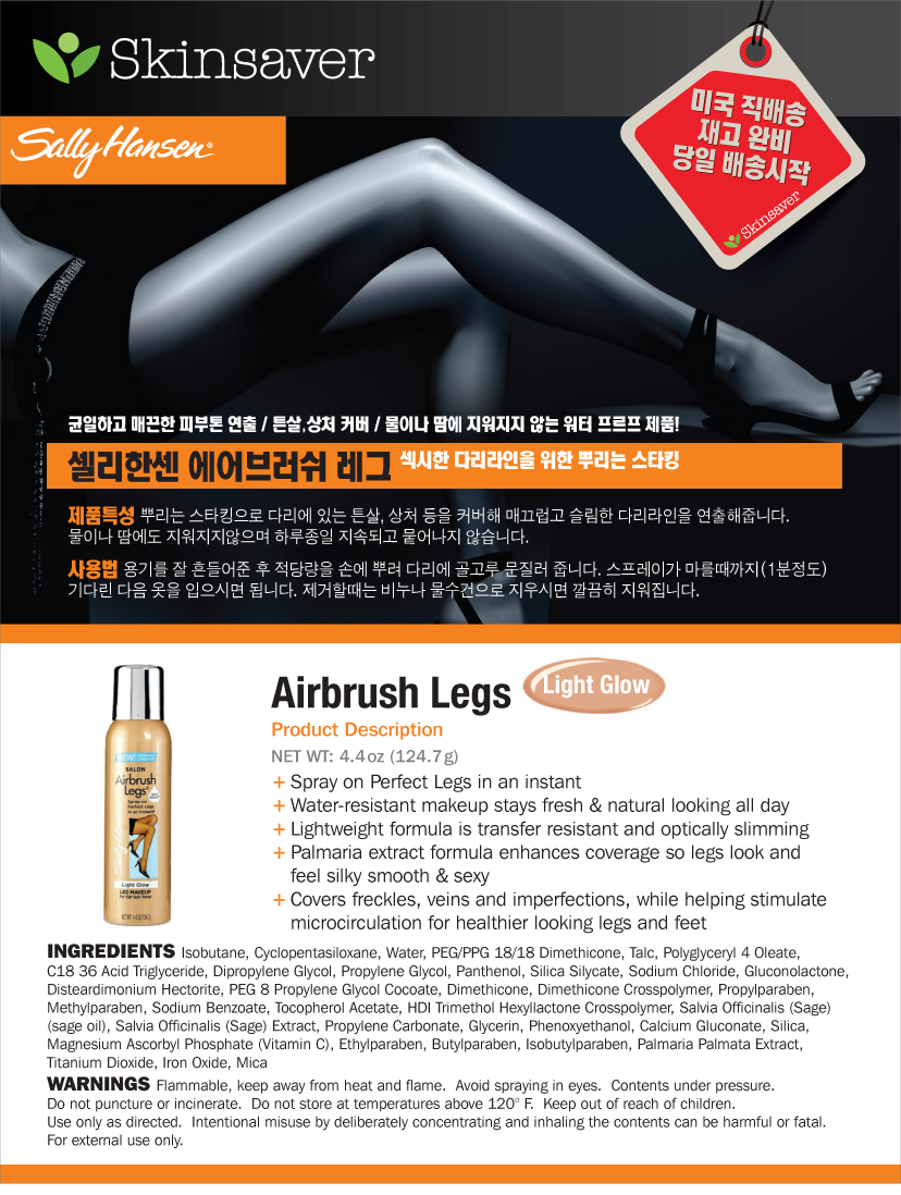 제조국 : 미국, 주요성분: 이소 부탄, 사이클로 펜타 실록산, 물, PEG / PPG 18/18 디메 치콘, 활석, 폴리 글리세 4 올리 에이트, C18 (36) 산 트리글리 세라이드, 디 프로필렌 글리콜, 프로필렌 글리콜, 판테놀, 실리카 Silycate, 염화나트륨, 글루코 놀 락톤, Disteardimonium 헥토 라이트, PEG 8 프로필렌 글리콜 코코 에이트, 디메 치콘, 디메 치콘 가교 중합체, 프로필 파라벤, 메틸 파라벤, 소듐 벤조 에이트, 토코페롤 아세테이트, HDI Trimethol Hexyllactone 가교 중합체, 샐비어의 Officinalis (세이지) (세이지 오일), 샐비어의 Officinalis (세이지) 추출물, 프로필렌 카보네이트, 글리세린, 페녹시 에탄올, 글루 콘산 칼슘, 실리카, 마그네슘 아스코 인산 (비타민 C), 에틸 파라벤, 부틸 파라벤, Isobutylparaben, 팔 마리아 섬 Palmata 추출물, 이산화 티타늄, 철 산화물, 운모