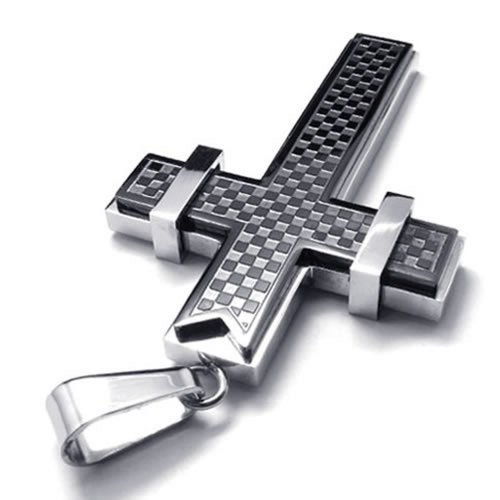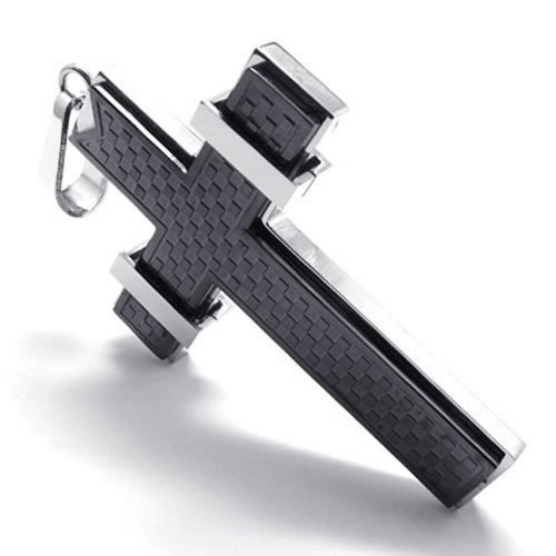 -. Title : KONOV Black Silver Stainless Steel Mens Cross Necklace Pendant for men 24 inches Chain