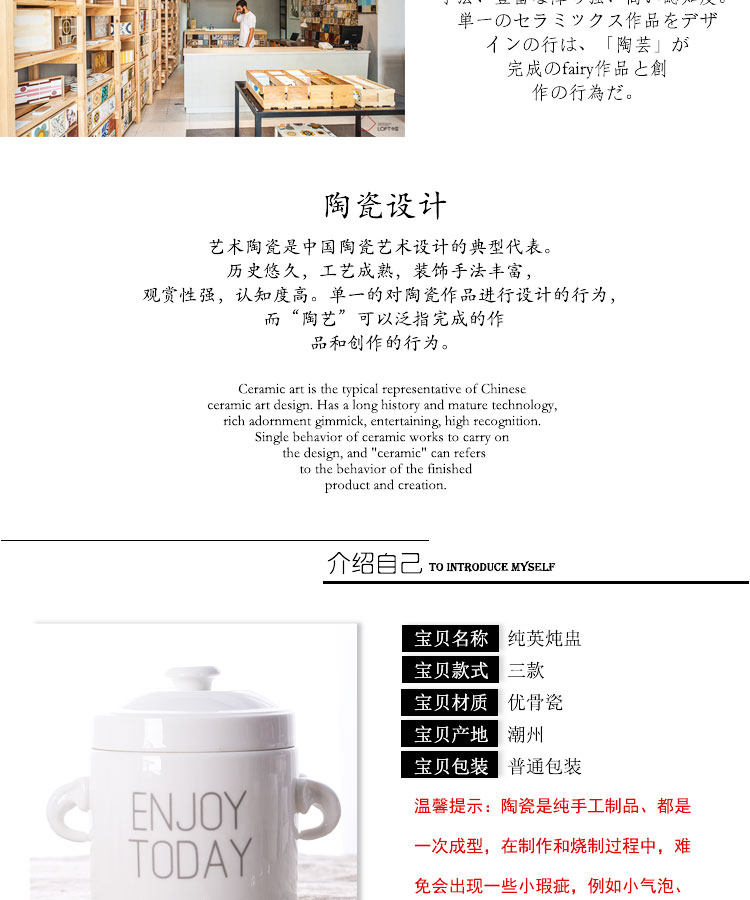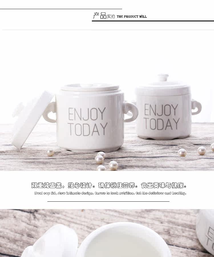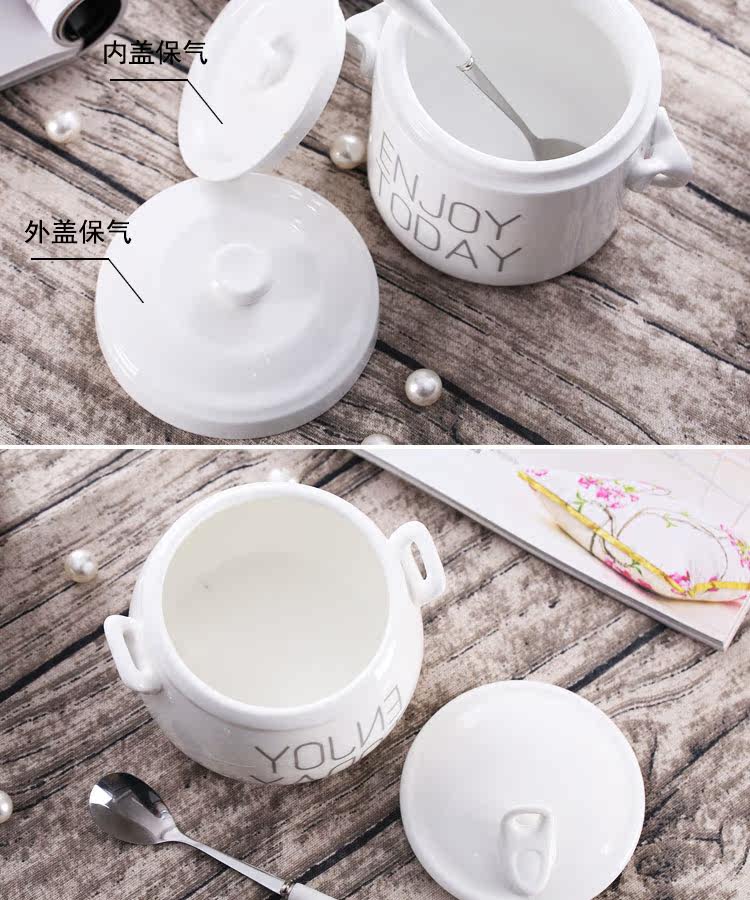 家用陶瓷双耳炖盅耐高温汤盅煲汤煮粥药膳隔水炖燕窝甜品带盖送勺
