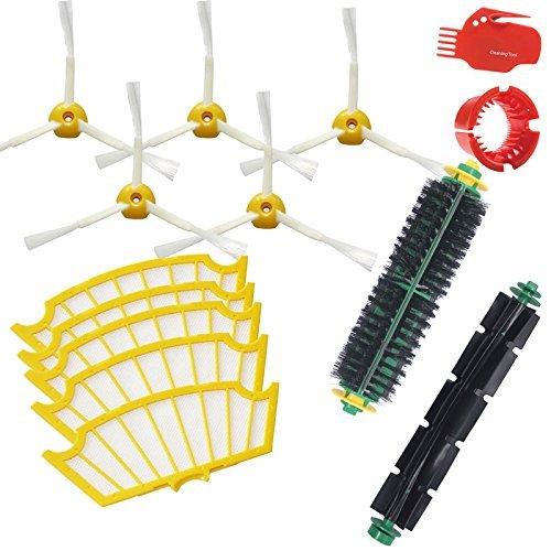 -. Feature : Compatible with: iRobot Roomba 500 Series (510, 530, 535, 540, 560, 570, 580, 610) / Vacuum Cleaning Robots all Green, Red, Black cleaning head / 1 x Bristle Brush & 1 x Flexible Beater Brush / 5 x 3-armed Side Brush / 5 x Filters & 2 Cleaning Tool