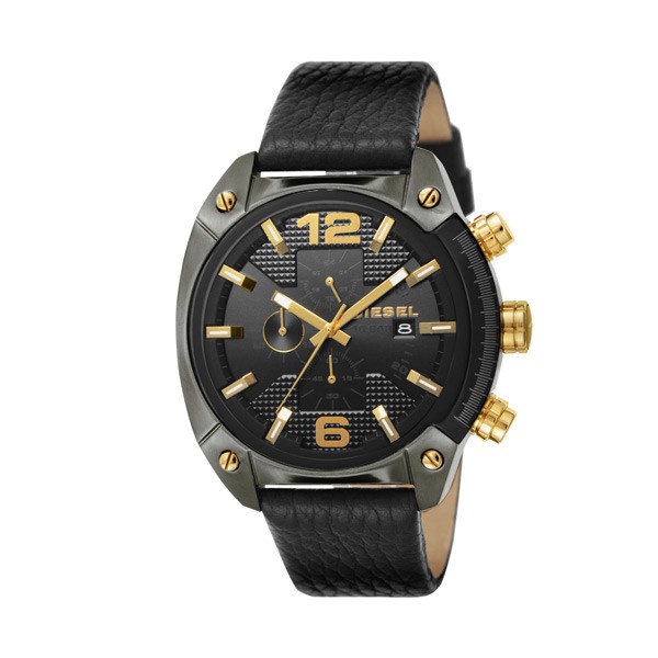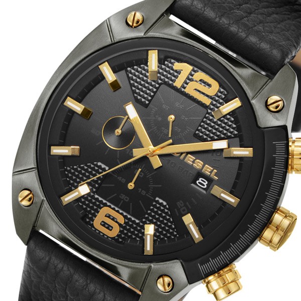 ディーゼル DIESEL OVERFLOW クロノグラフ クオーツ ウォッチ 時計 ファッション 人気ブランド  商品仕様:(約)H46×W49×D13mm、文字盤:41×41mm、重量:110g、腕回り最小:15cm、腕回り最大:21cm ステンレス(ガンメタリックPVD)(ケース)、カーフ革(ベルト)、ミネラルガラス(ガラス) 専用BOX、取扱説明書、保証書