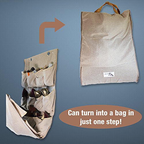 Need a shoe bag? You can reverse the pockets and zip up the sides to carry up to 16 pairs of shoes in your Shoe Bagnizer! The double handles allow you to carry it as a bag or you can store away your shoes for the off season