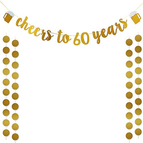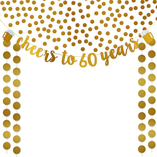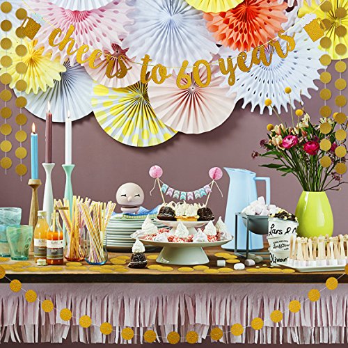-. Title : Gold Glittery Cheers To 60 Years Banner,Gold Glittery Circle Dots Garland and Gold Glittery Circle Dots Confetti,for 60th Birthday Wedding Anniversary Party Decoration Supplies