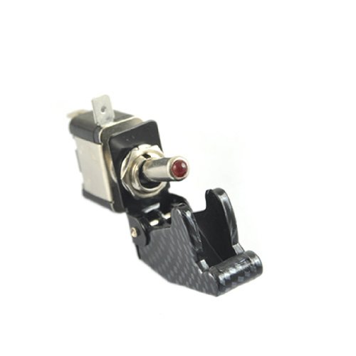 HOTSYSTEM 12V Aircraft Type Carbon Fiber Red LED Car Automotive SPST Toggle Illuminated On/off Switch Button